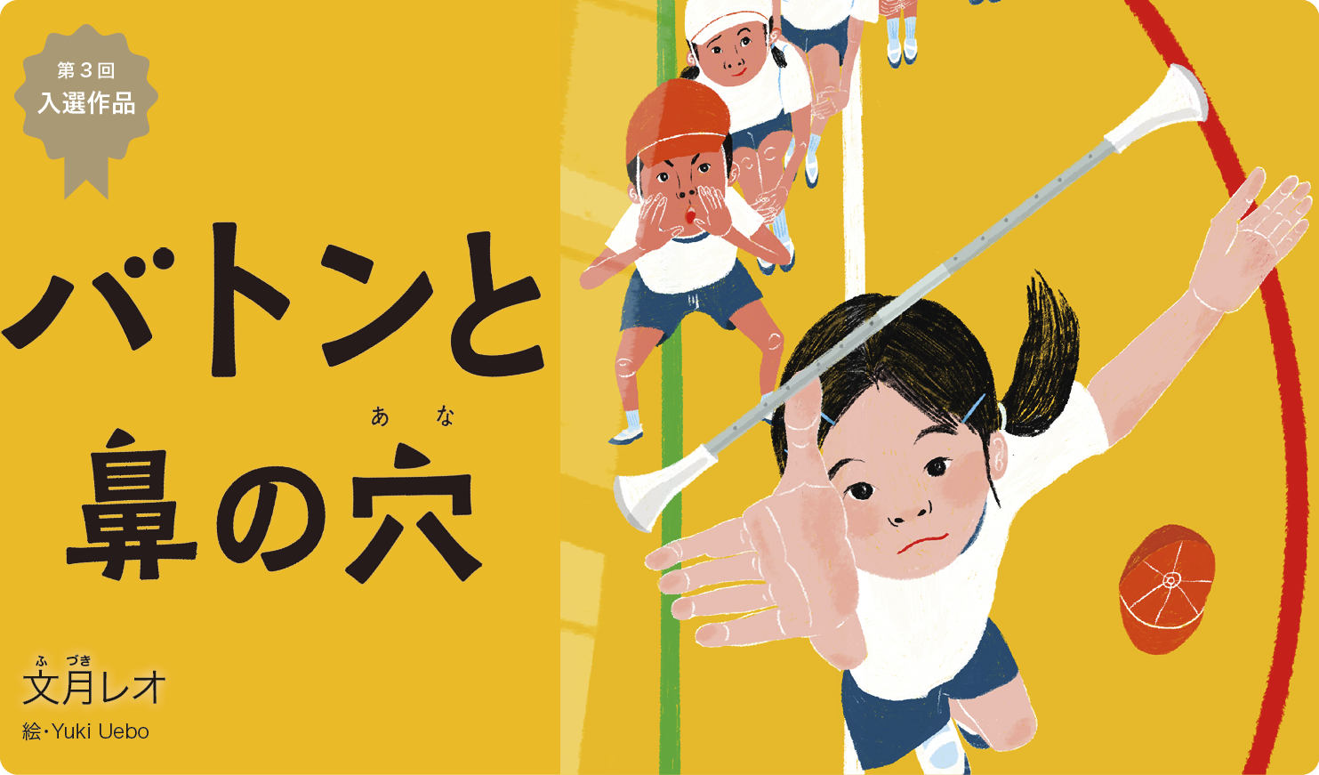 ゆりちゃんは、ときどき真面目な顔をして、こんなふうに一生けん命になる。かけっこもドッジボールも、それからバトンも。ゆりちゃんが真面目な顔になると、ぼくは、ちょっと困る。おどけた顔のゆりちゃんのほうが話しやすいから。